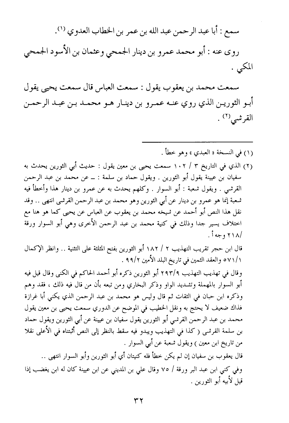 سمعت محمد بن يعقوب يقول : سمعت العباس ، قال : سَمِعتُ يحيى يقول أبو الثورين الذي رَوَى عَنه عَمْرو بن دينار هو محمد بن عبد الرحمن القرشي.