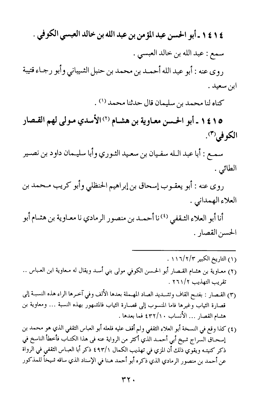 1414- أبو الحسن عبد المؤمن بن عبد الله بن خالد العبسي الكوفي.