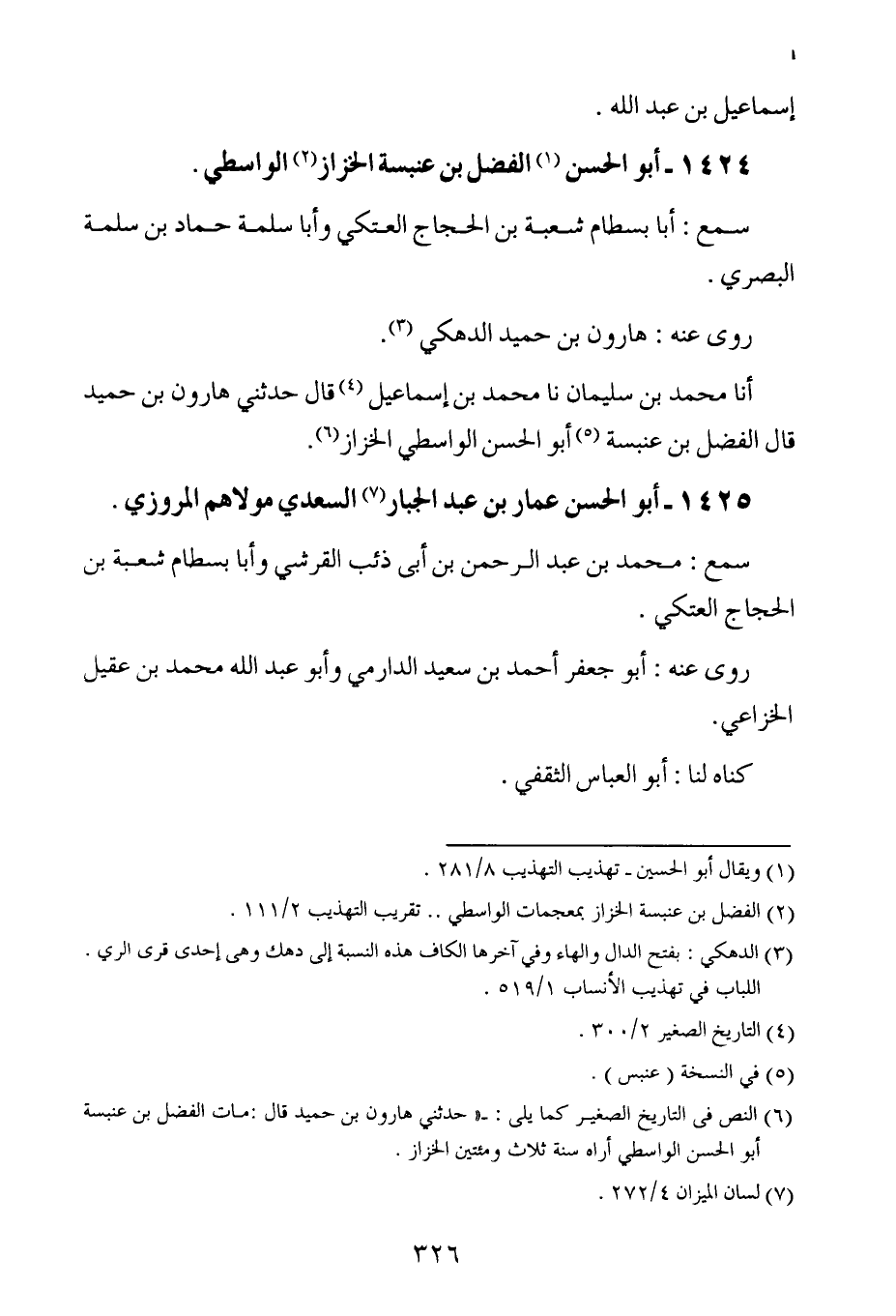 1424- أبو الحسن الفضل بن عنبسة الخزاز الواسطي.