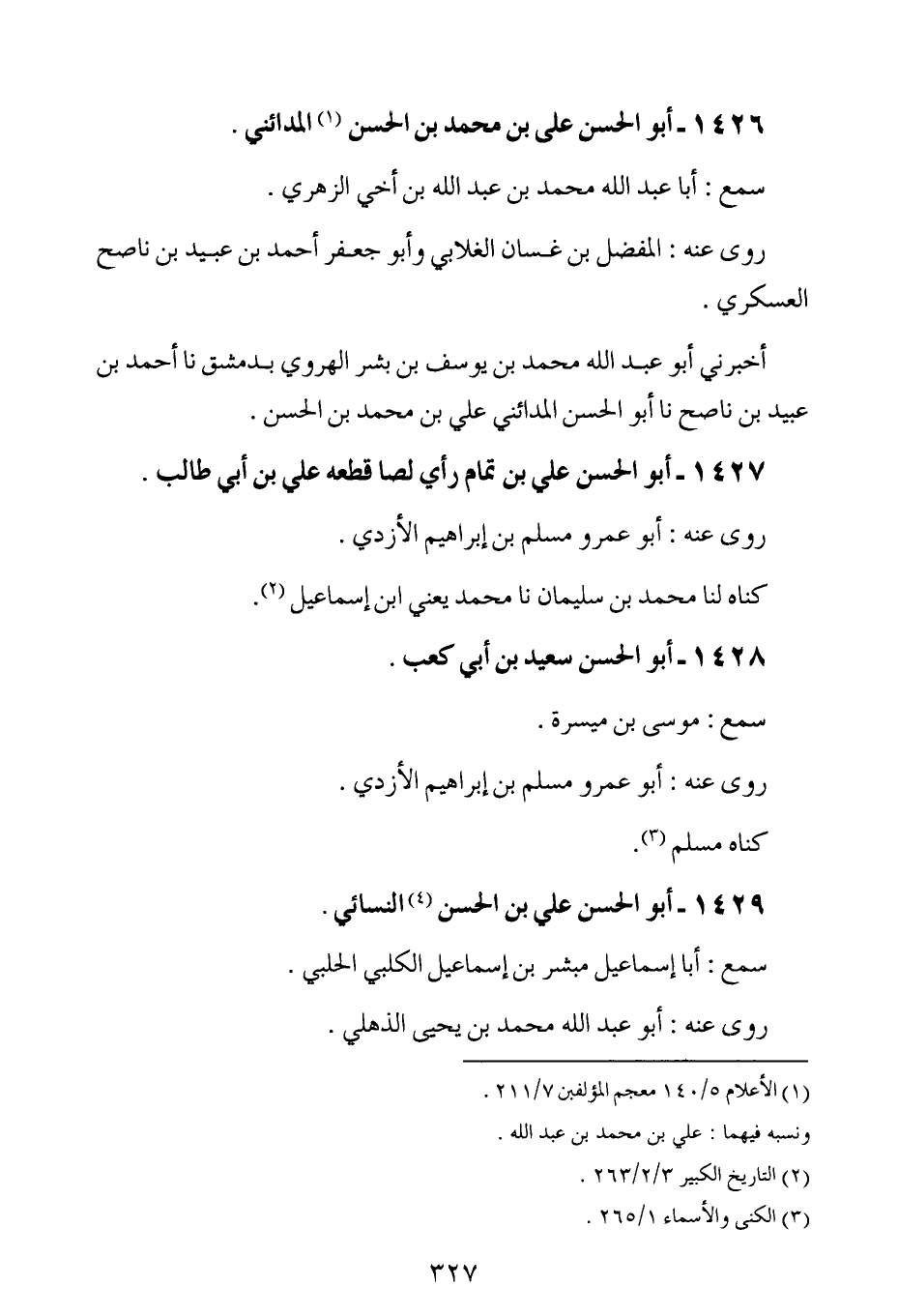 1426- أبو الحسن علي بن محمد بن الحسن المدائني.