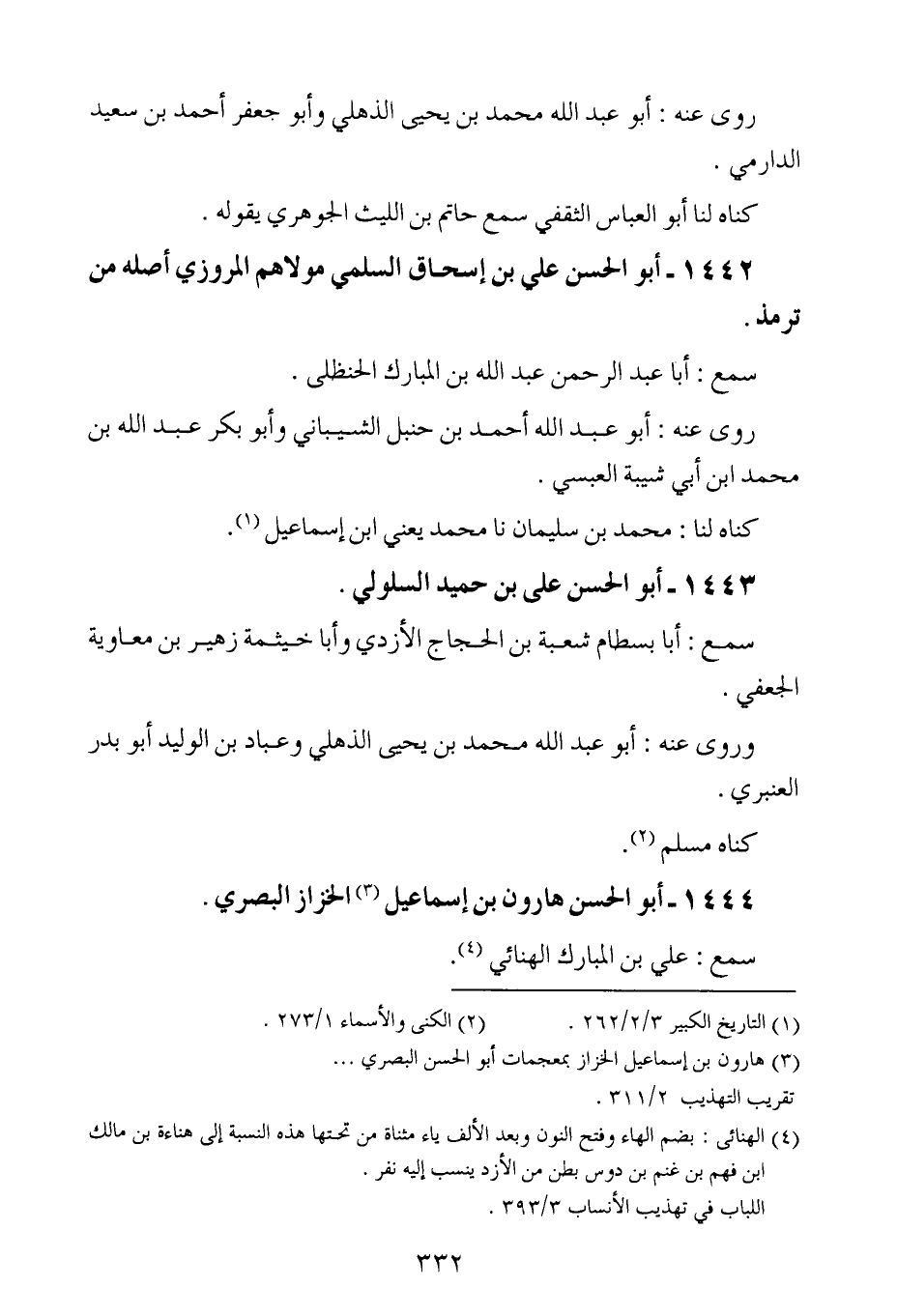 1444- أبو الحسن هارون بن إسماعيل الخزاز البصري.