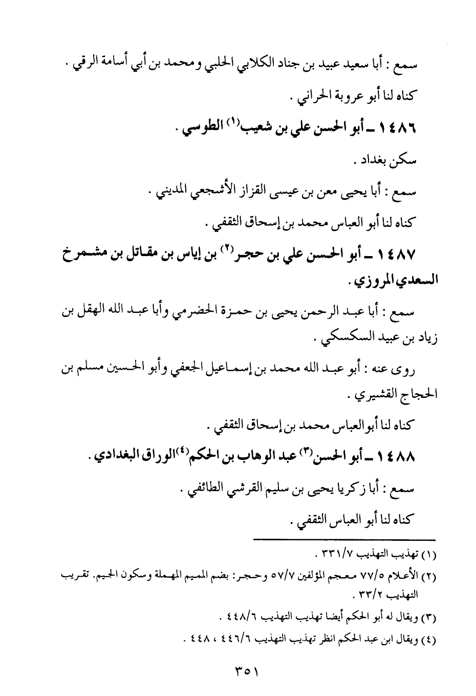 1488- أبو الحسن عبد الوهاب بن الحكم الوراق البغدادي.