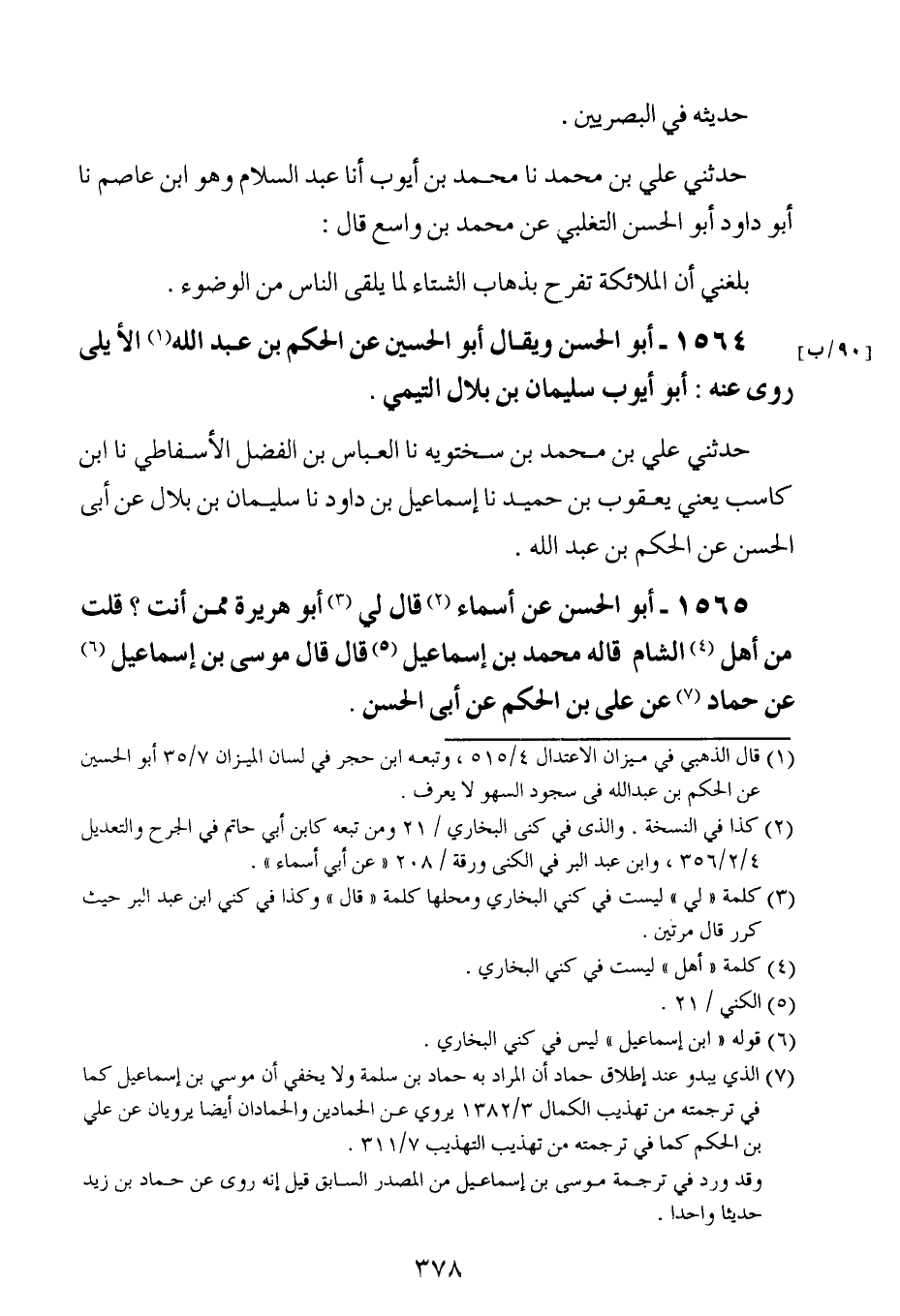1564- أبو الحسن ، وَيُقَال : أبو الحسن عن الحكم بن عبد الله الأيلي رَوَى عَنه أبو أيوب سُليمان بن بلال التيمي.
