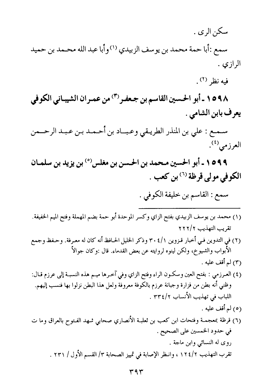 1599- أبو الحسين محمد بن الحسن بن مغلس بن يزيد بن سُليمان الكوفي مولى قرظة بن كعب.
