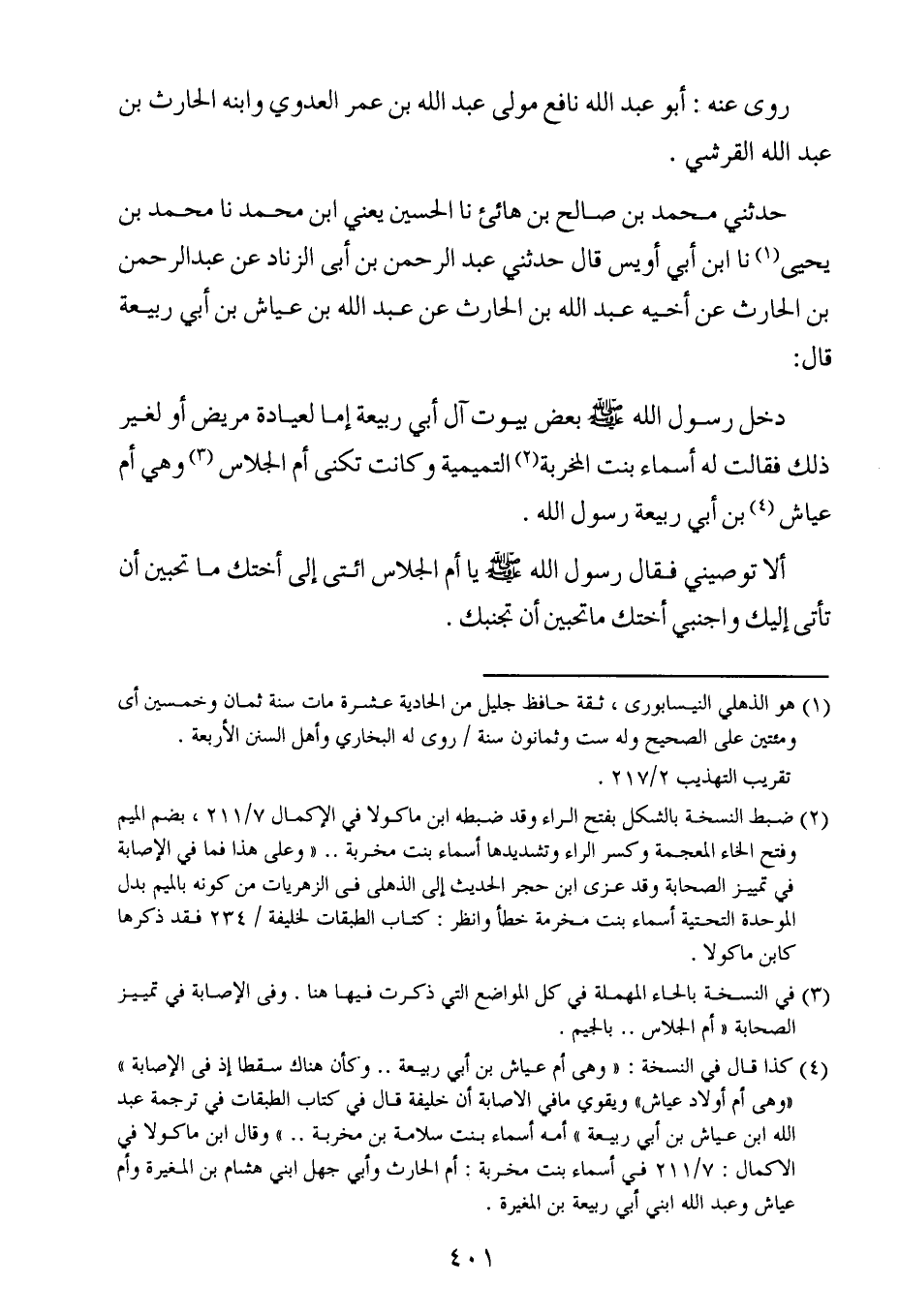 حدثني محمد بن صالح بن هانِئ ، حَدَّثنا الحسين ، يَعنِي ابن محمد ، حَدَّثنا محمد بن يحيى ، حَدَّثنا ابن أبي أويس ، قال : حَدَّثني عبد الرحمن بن أبي الزناد عن عبد الرحمن بن الحارث عن أخيه عبد الله بن الحارث عن عبد الله بن عياش بن أبي ربيعة قال :