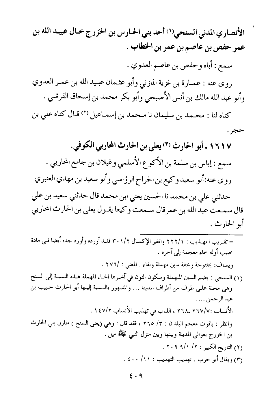 1616- أبو الحارث خبيب بن عبد الرحمن بن خبيب بن يساف الأنصاري المدني السنحي احد بني الحارث بن الخزرج خال عبيد الله بن عُمَر حفص بن عاصم بن عُمَر بن الخطاب.