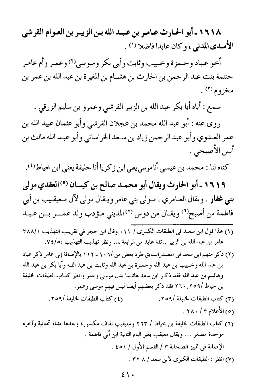 1618- أبو الحارث عامر بن عبد الله بن الزبير بن العوام القرشي الأسدي المدني ، وكان عابدا فاضلا.