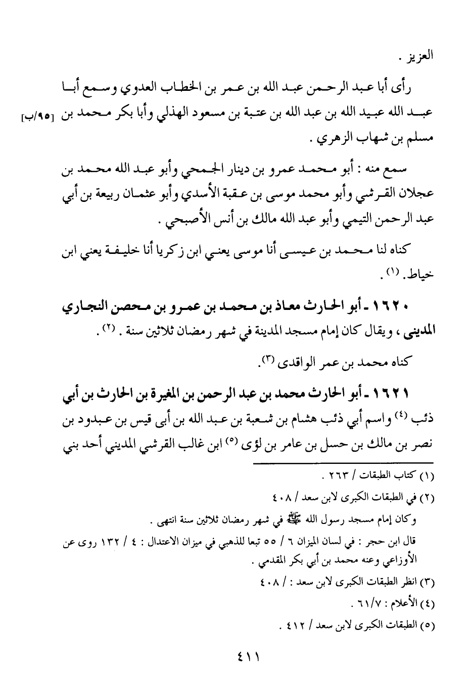1620- أبو الحارث معاذ بن محمد بن عَمْرو بن محصن النجاري المديني ، وَيُقَال : كان إمام مسجد المدينة في شهر رمضان ثلاثين سنة.
