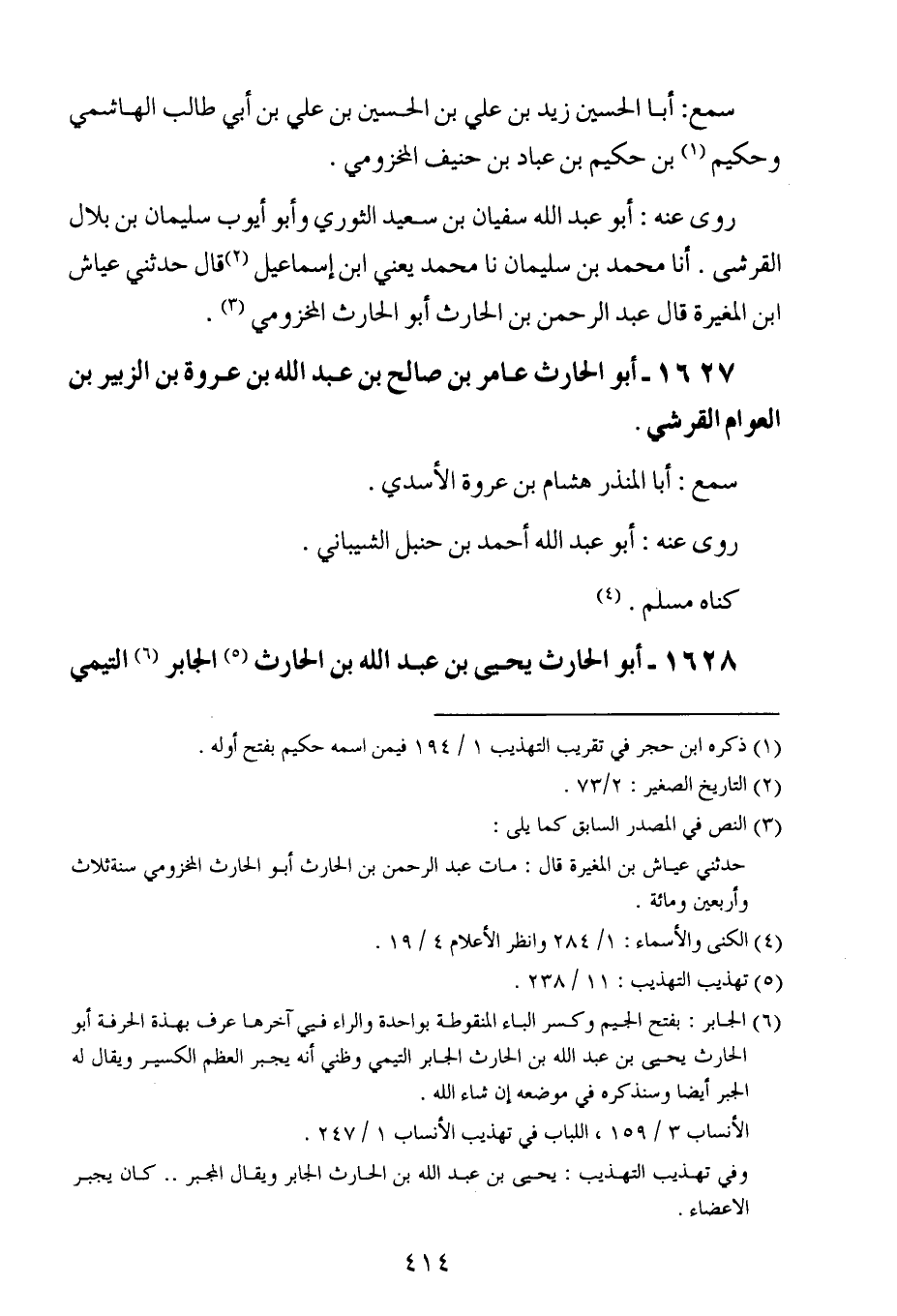 1627- أبو الحارث عامر بن صالح بن عبد الله بن عروة بن الزبير بن العوام القرشي.