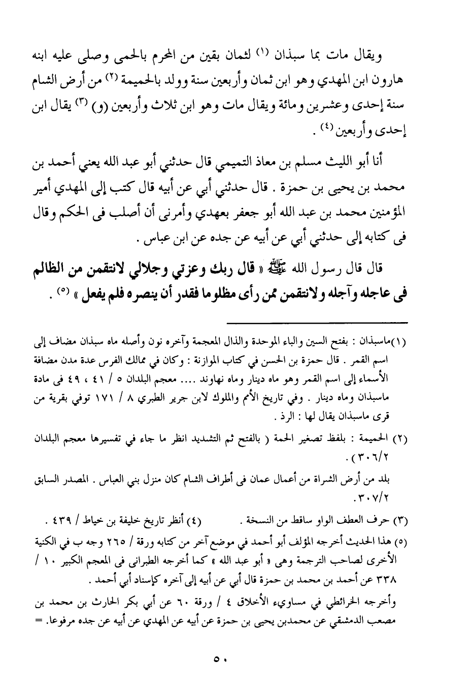 أَخْبَرنا أبو الليث مسلم بن معاذ التميمي ، قال : حَدَّثني أبو عبد الله ، يَعني أحمد بن محمد بن يحيى بن حمزة.