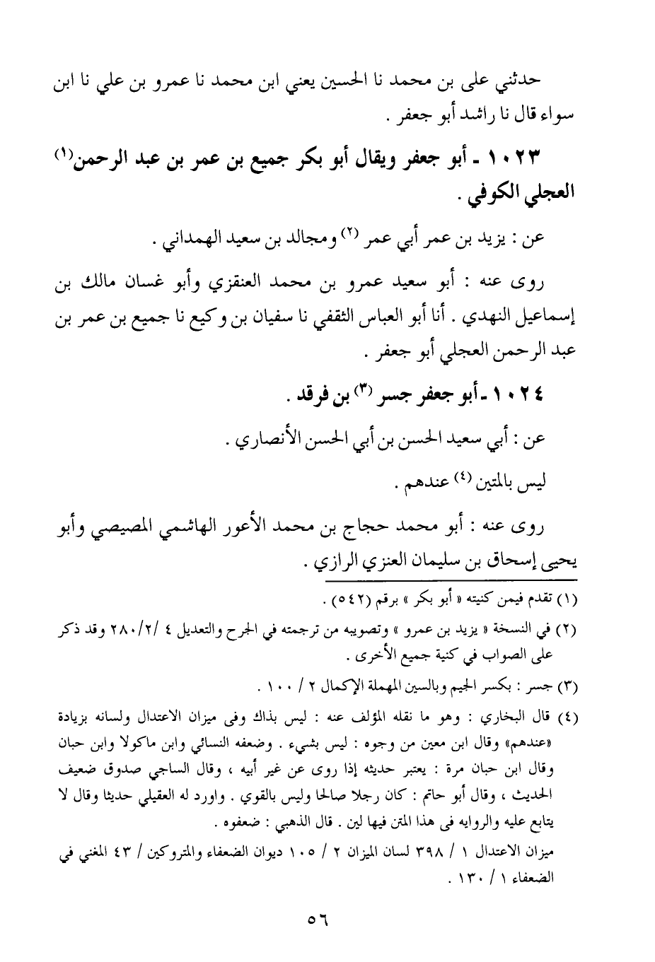 1023- أبو جعفر ، وَيُقَال : أبو بكر جميع بن عُمَر بن عبد الرحمن العجلي الكوفي.