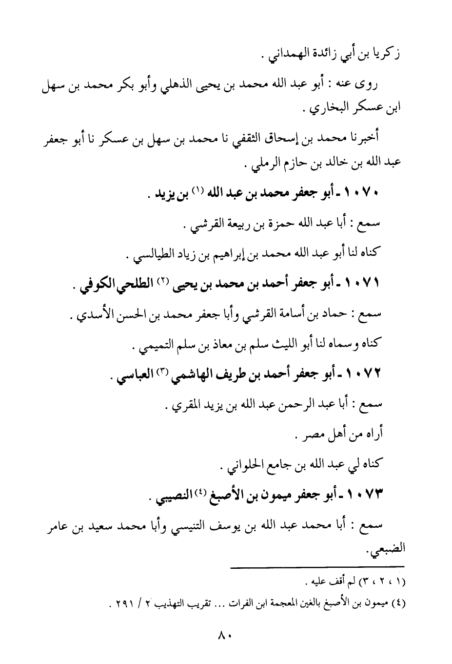 1071- أبو جعفر أحمد بن محمد بن يحيى الطلحي الكوفي.