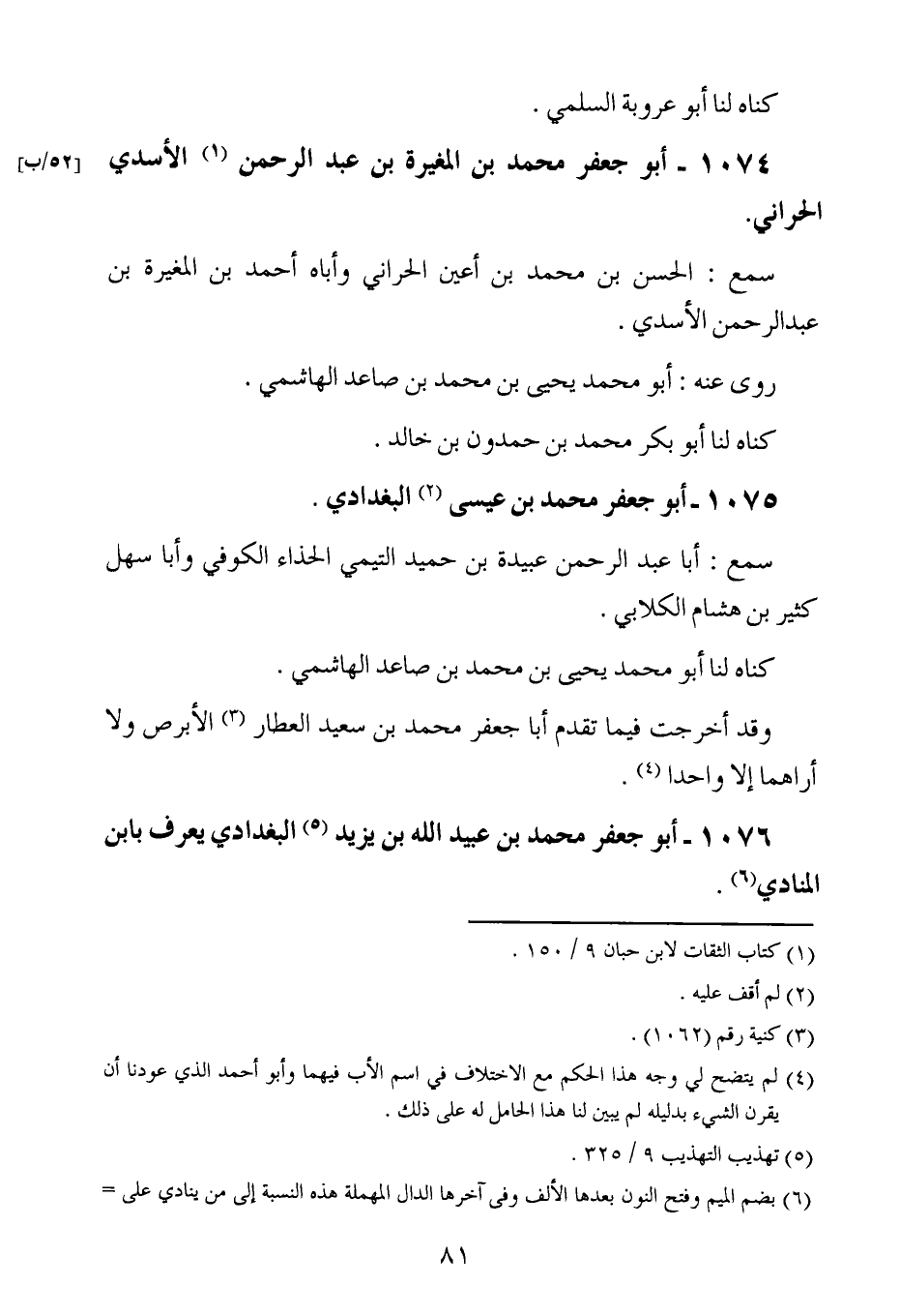 1074- أبو جعفر محمد بن المغيرة بن عبد الرحمن الأسدي الحراني.