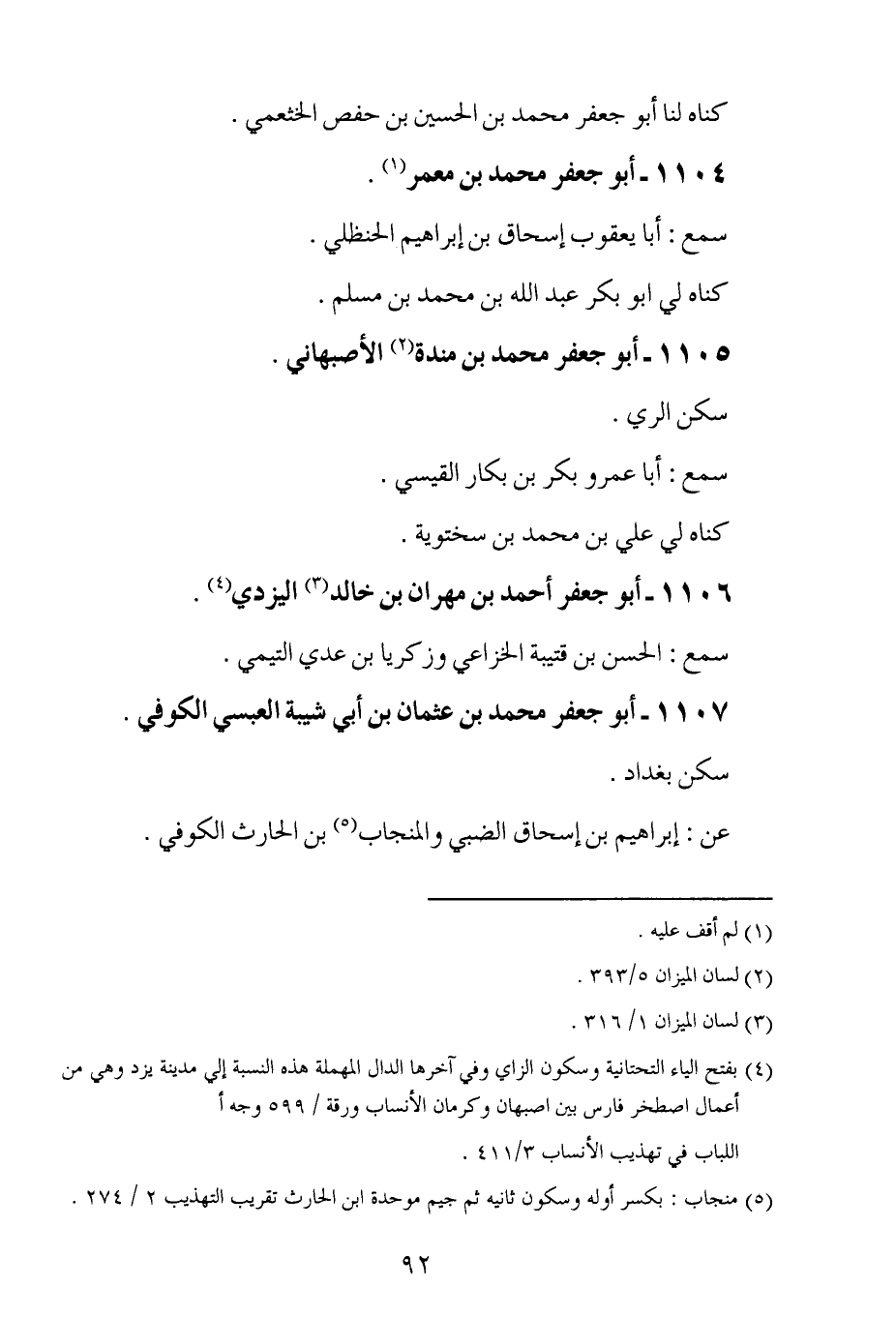 1106- أبو جعفر أحمد بن مهران بن خالد اليزدي.