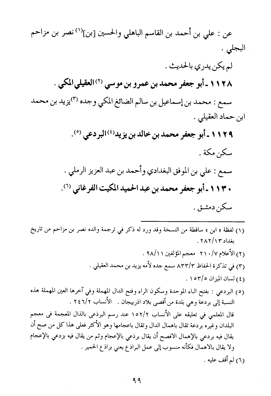 1128- أبو جعفر محمد بن عَمْرو بن موسى العقيلي المكي.