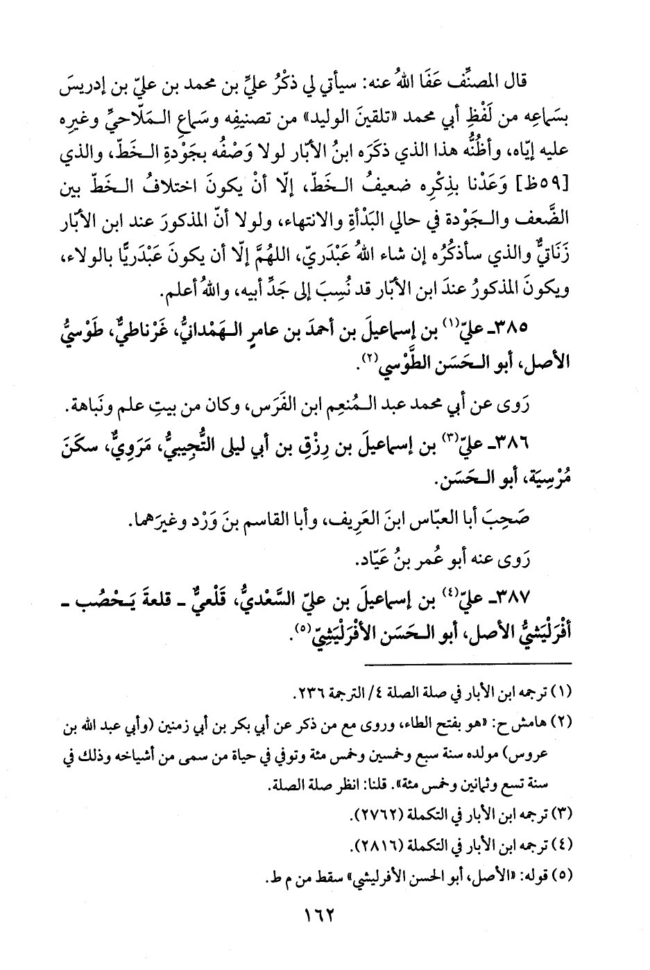 385 - عليّ (¬1) بن إسماعيلَ بن أحمدَ بن عامرٍ الهَمْدانيُّ، غَرْناطيٌّ، طَوْسيُّ الأصل، أبو الحَسَن الطَّوْسي (¬2).