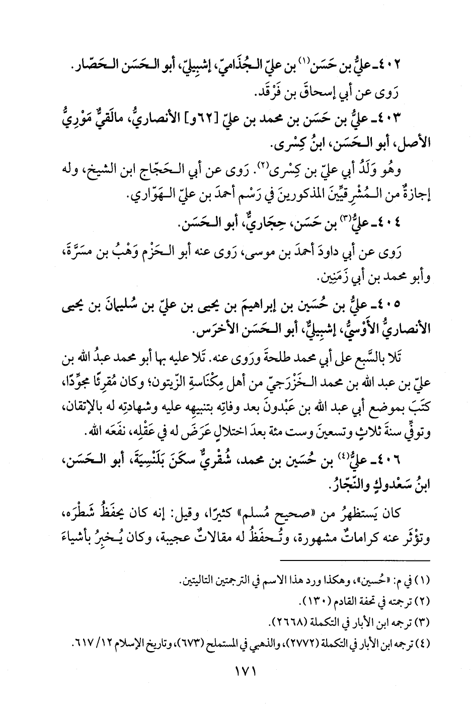 405 - عليُّ بن حُسَين بن إبراهيمَ بن يَحْيَى بن عليّ بن سُليمانَ بن يَحْيَى الأنصاريُّ الأَوْسيُّ، إشبِيليٌّ، أبو الحَسَن الأخرَس.