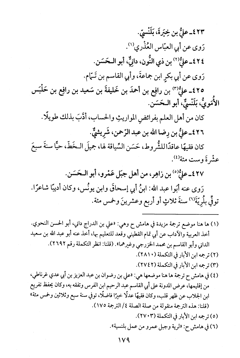 425 - عليُّ (¬3) بن رافِع بن أحمدَ بن خَليفةَ بن سَعيد بن رافِع بن حَلْبَس الأُمَويُّ، بَلَنْسيٌّ، أبو الحَسَن.