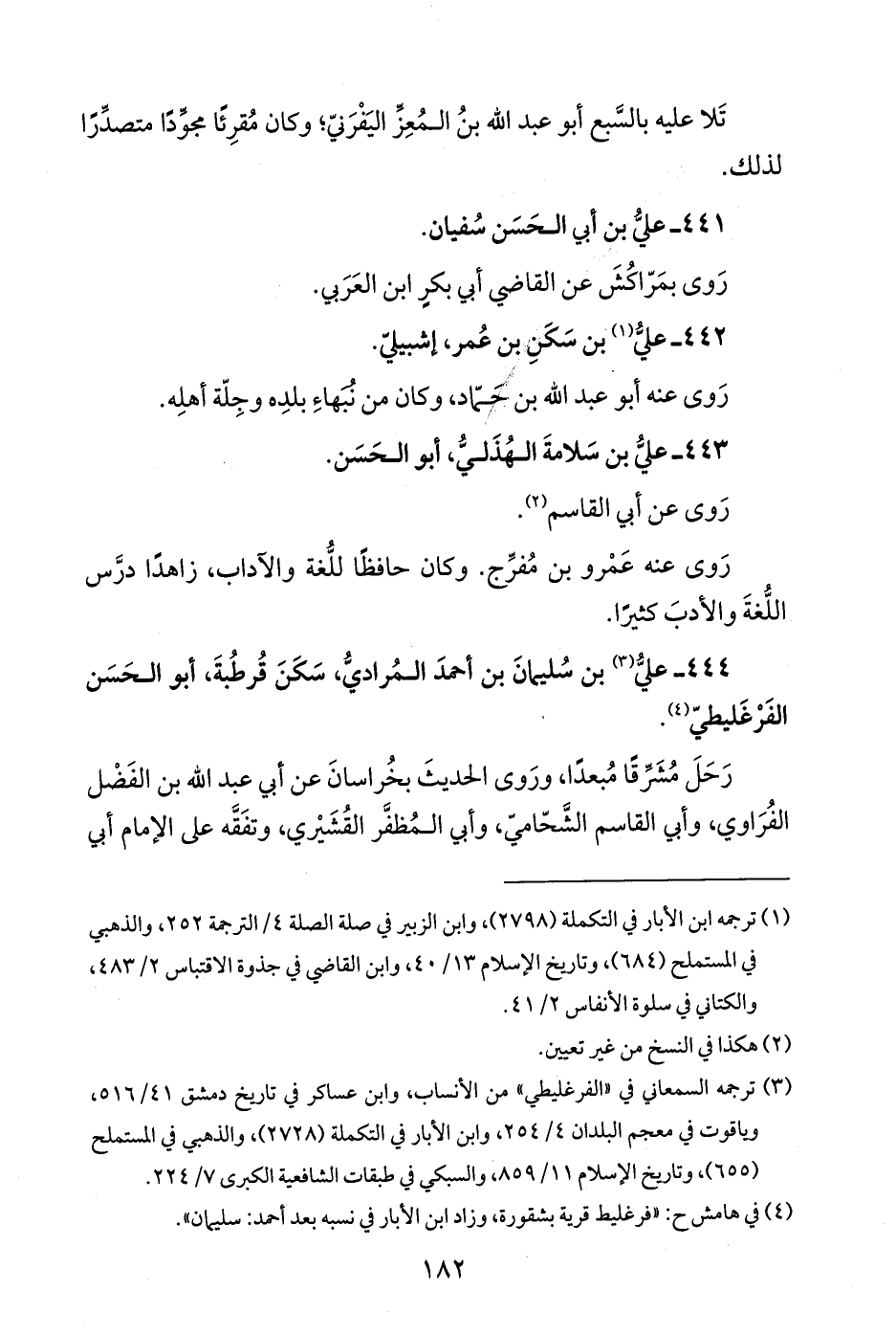 444 - عليُّ (¬3) بن سُليمانَ بن أحمدَ المُراديُّ، سَكَنَ قُرطُبةَ، أبو الحَسَن الفَرْغَليطيّ (¬4).