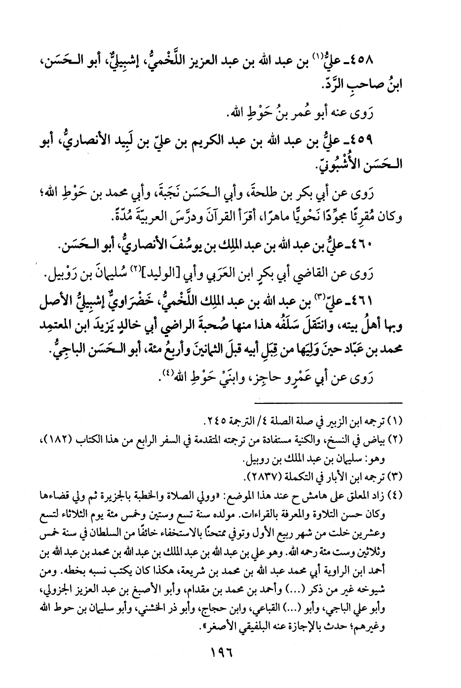 458 - عليُّ (¬1) بن عبد الله بن عبد العزيز اللَّخْميُّ، إشبِيليٌّ، أبو الحَسَن، ابنُ صاحبِ الرَّدّ.