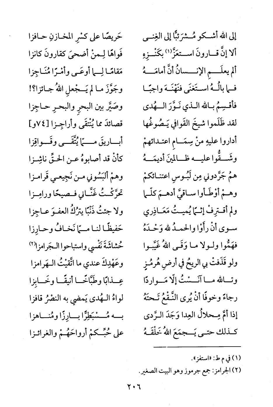 إلى الله أشكو مُشرَئبًّا إلى الغِنى ... حَريصًا على كسْرِ المخازنِ حافزا