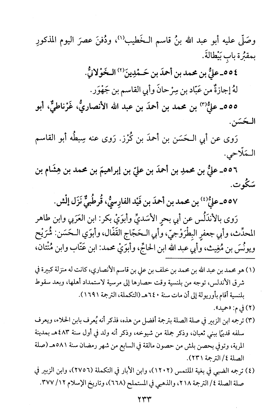 (¬4) ترجمه الضبي في بغية الملتمس (1202)، وابن الأبار في التكملة (2756)، وابن الزبير في صلة الصلة 4/الترجمة 218، والذهبي في المستملح (668)، وتاريخ الإسلام 12/ 377.