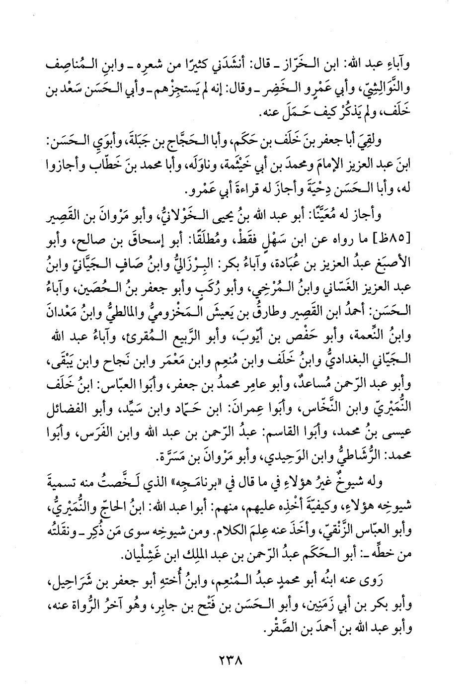 وآباءِ عبد الله: ابن الخَرّاز -قال: أنشَدَني كثيرًا من شعرِه- وابنِ المُناصِف والنَّوَالِشِيّ، وأبي عَمْرٍو الخَضِر -وقال: إنه لم يَستجِزْهم- وأبي الحَسَن سَعْد بن خَلَف، ولم يَذكُرْ كيف حَمَلَ عنه.