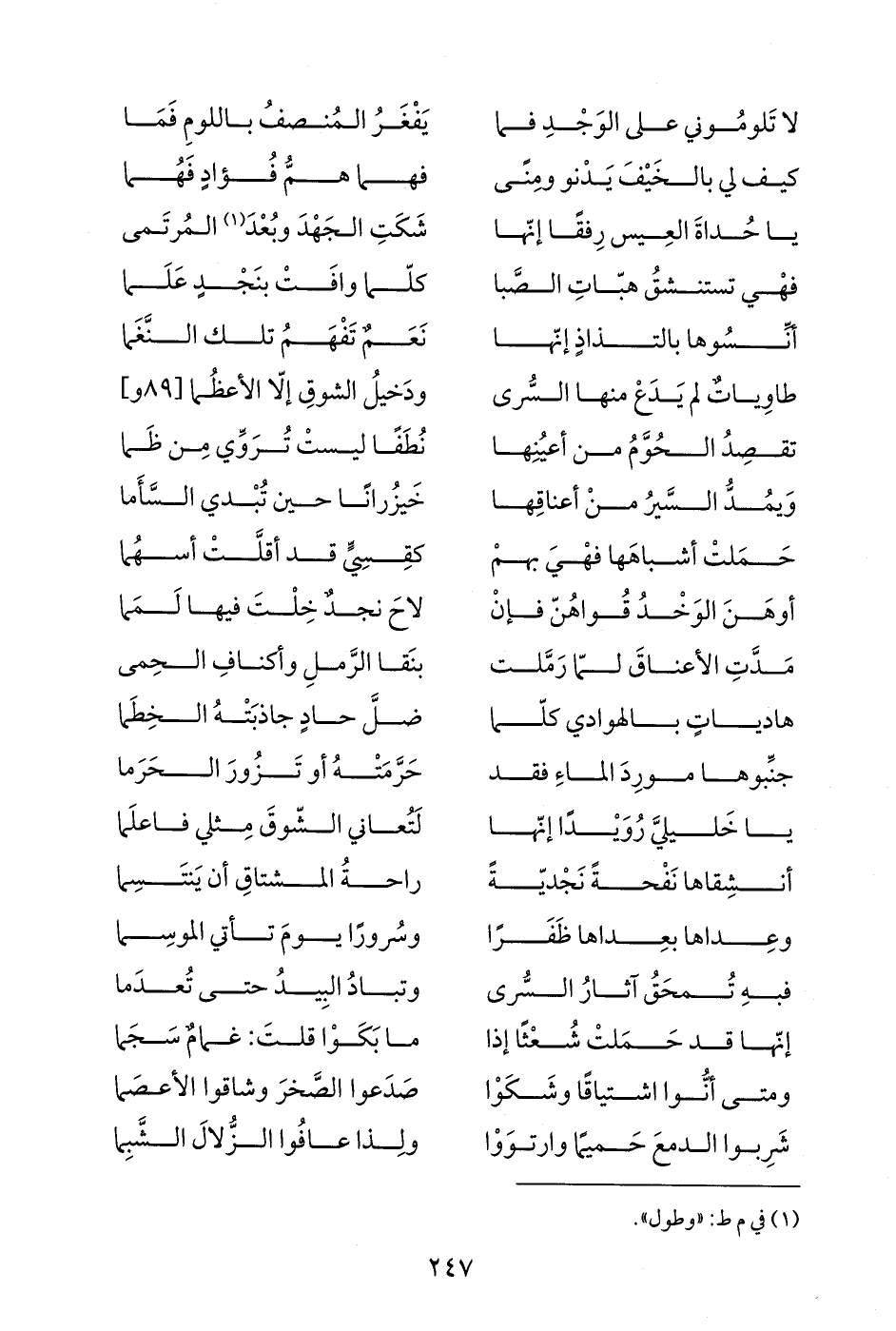 طاوِياتٌ لم يَدَعْ منها ... السُّرى ودَخيلُ الشوقِ إلّا الأعظُما [89 و]