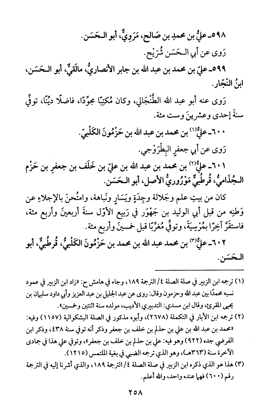 602 - عليُّ (¬3) بن محمد عبد الله بن محمد بن حَزْمُونَ الكَلْبيُّ، قُرطُبيٌّ، أبو الحَسَن.