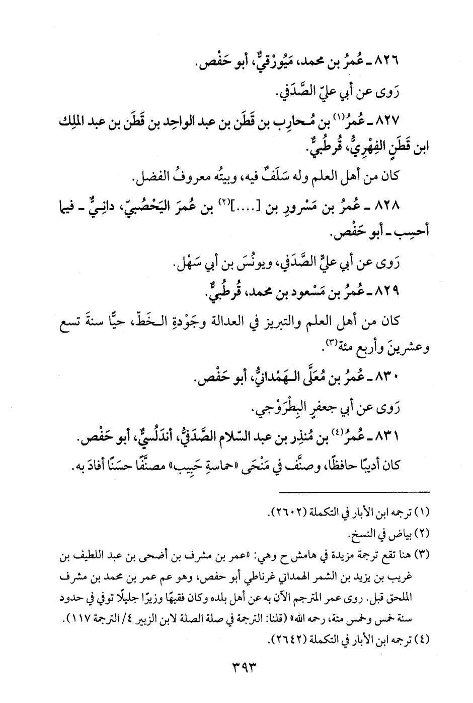 831 - عُمرُ (¬4) بن مُنذِر بن عبد السّلام الصَّدَفيُّ، أندَلُسيٌّ، أبو حَفْص.