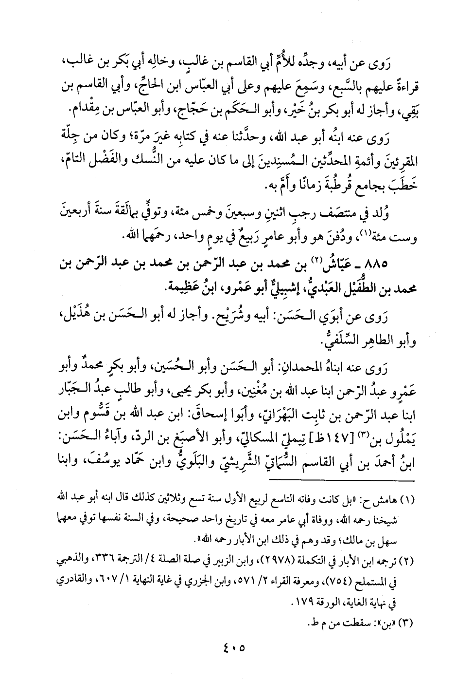 885 - عَيّاشُ (¬2) بن محمد بن عبد الرّحمن بن محمد بن عبد الرّحمن بن محمد بن الطُّفَيْل العَبْديُّ، إشبِيليٌّ أبو عَمْرو، ابنُ عَظِيمة.