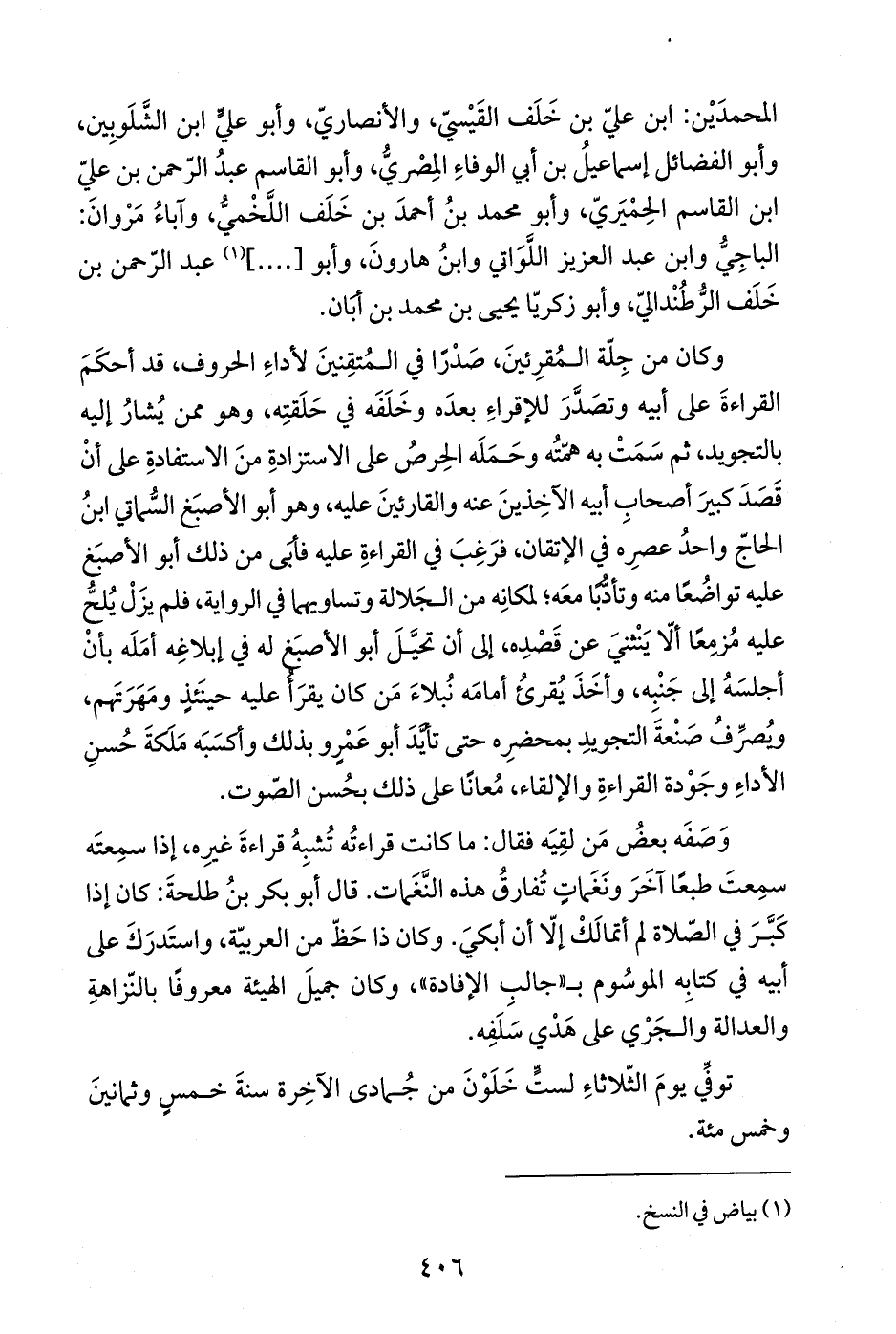 المحمدَيْن: ابن عليّ بن خَلَف القَيْسيّ، والأنصاريّ، وأبو عليٍّ ابن الشَّلَوبِين، وأبو الفضائل إسماعيلُ بن أبي الوفاءِ المِصْريُّ، وأبو القاسم عبدُ الرّحمن بن عليّ ابن القاسم الحِمْيَريّ، وأبو محمد بنُ أحمدَ بن خَلَف اللَّخْميُّ، وآباءُ مَرْوانَ: الباجِيُّ وابن عبد العزيز اللَّوَاتي وابنُ هارونَ، وأبو [....] (¬1) عبد الرّحمن بن خَلَف الرُّطُنْداليّ، وأبو زكريّا يحيى بن محمد بن أبَان.