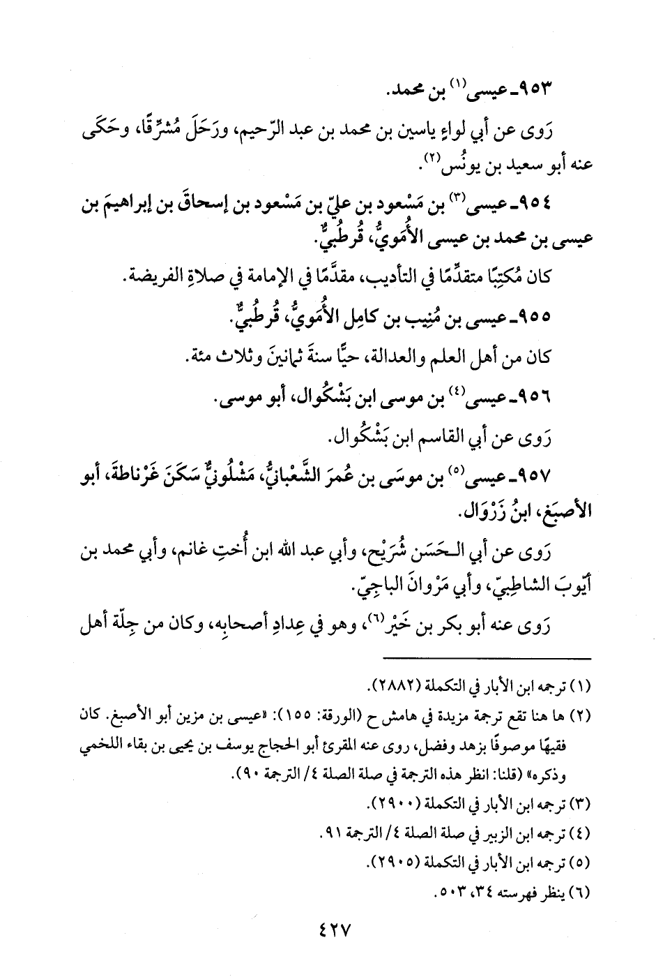 954 - عيسى (¬3) بن مَسْعود بن عليّ بن مَسْعود بن إسحاقَ بن إبراهيمَ بن عيسى بن محمد بن عيسى الأُمَويُّ، قُرطُبيٌّ.