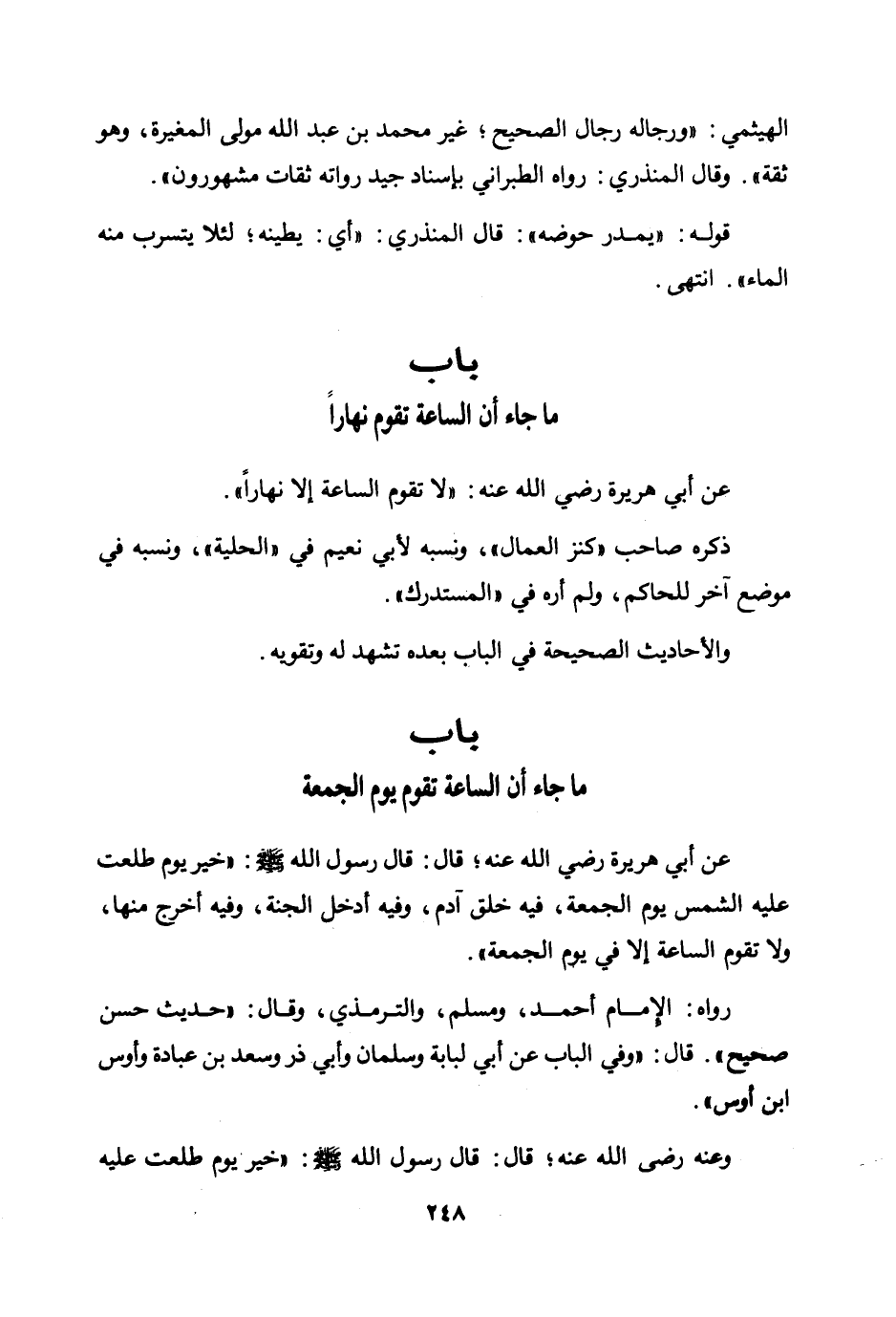 عن أبي هريرة رضي الله عنه؛ قال: قال رسول الله صلى الله عليه وسلم: «خير يوم طلعت عليه الشمس يوم الجمعة، فيه خلق آدم، وفيه أدخل الجنة، وفيه أخرج منها، ولا تقوم الساعة إلا في يوم الجمعة» .