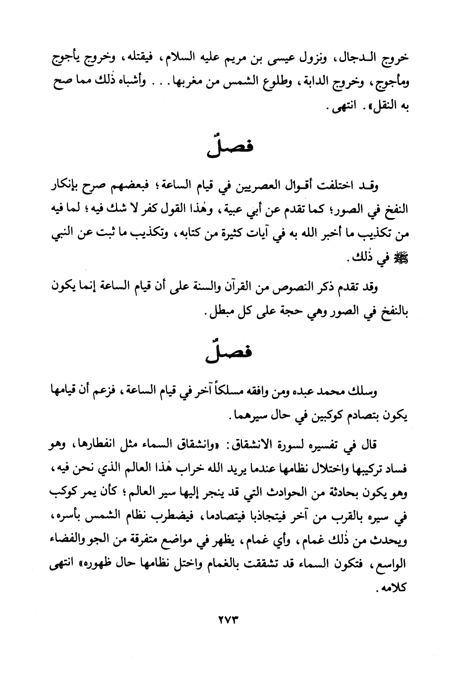 وقد اختلفت أقوال العصريين في قيام الساعة؛ فبعضهم صرح بإنكار النفخ في الصور؛ كما تقدم عن أبي عبية، وهذا القول كفر لا شك فيه؛ لما فيه من تكذيب ما أخبر الله به في آيات كثيرة من كتابه، وتكذيب ما ثبت عن النبي صلى الله عليه وسلم في ذلك.
