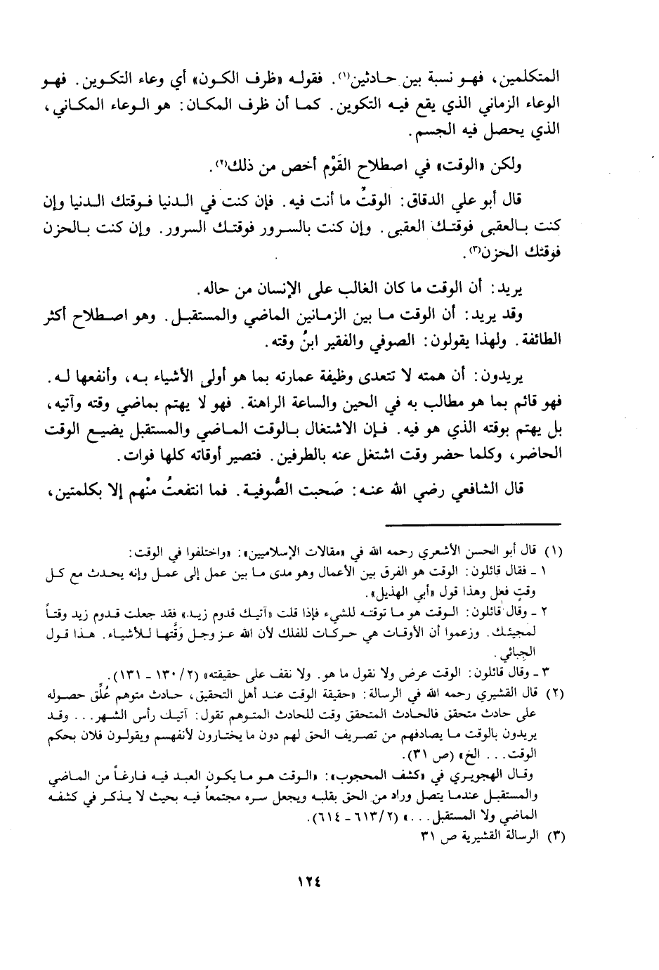 قَالَ أَبُو عَلِيٍّ الدَّقَّاقُ: الْوَقْتُ مَا أَنْتَ فِيهِ. فَإِنْ كُنْتَ فِي الدُّنْيَا فَوَقْتُكَ الدُّنْيَا وَإِنْ كُنْتَ بِالْعُقْبَى فَوَقْتُكَ الْعُقْبَى. وَإِنْ كُنْتَ بِالسُّرُورِ فَوَقْتُكَ السُّرُورُ. وَإِنْ كُنْتَ بِالْحُزْنِ فَوَقْتُكَ الْحُزْنُ.