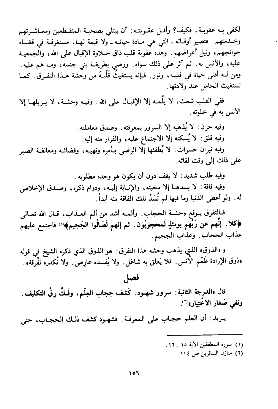 فَالتَّفَرُّقُ يُوقِعُ وَحْشَةَ الْحِجَابِ. وَأَلَمُهُ أَشَدُّ مِنْ أَلَمِ الْعَذَابِ. قَالَ اللَّهُ تَعَالَى: {كَلَّا إِنَّهُمْ عَنْ رَبِّهِمْ يَوْمَئِذٍ لَمَحْجُوبُونَ ثُمَّ إِنَّهُمْ لَصَالُو الْجَحِيمِ} [المطففين: 15] . فَاجْتَمَعَ عَلَيْهِمْ عَذَابُ الْحِجَابِ وَعَذَابُ الْجَحِيمِ.