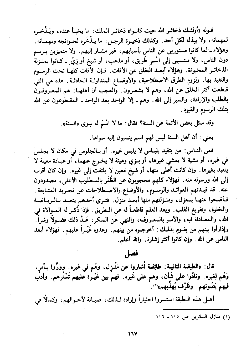 قَالَ: الطَّبَقَةُ الثَّانِيَةُ: طَائِفَةٌ أَشَارُوا عَنْ مَنْزِلٍ وَهُمْ فِي غَيْرِهِ، وَوَرُّوا بِأَمْرٍ وَهُمْ لِغَيْرِهِ، وَنَادَوْا عَلَى شَأْنٍ وَهُمْ عَلَى غَيْرِهِ فَهُمْ بَيْنَ غَيْرَةٍ عَلَيْهِمْ تَسْتُرُهُمْ وَأَدَبٍ فِيهِمْ يَصُونُهُمْ وَظَرْفٍ يُهَذِّبُهُمْ.