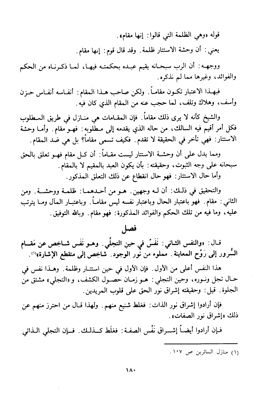 وَالشَّيْخُ كَأَنَّهُ لَا يَرَى ذَلِكَ مَقَامًا، فَإِنَّ الْمَقَامَاتِ هِيَ مَنَازِلُ فِي طَرِيقِ الْمَطْلُوبِ فَكُلُّ أَمْرٍ أُقِيمَ فِيهِ السَّالِكُ مِنْ حَالِهِ الَّذِي يُقَدِّمُهُ إِلَى مَطْلُوبِهِ: فَهُوَ مَقَامٌ، وَأَمَّا وَحْشَةُ الِاسْتِتَارِ: فَهِيَ تَأَخُّرٌ فِي الْحَقِيقَةِ لَا تَقَدُّمٌ، فَكَيْفَ تُسَمَّى مَقَامًا؟ بَلْ هِيَ ضِدُّ الْمَقَامِ.