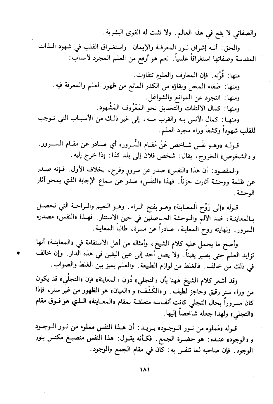 وَالْحَقُّ أَنَّهُ إِشْرَاقُ نُورِ الْمَعْرِفَةِ وَالْإِيمَانِ، وَاسْتِغْرَاقُ الْقَلْبِ فِي شُهُودِ الذَّاتِ الْمُقَدَّسَةِ وَصِفَاتِهَا اسْتِغْرَاقًا عِلْمِيًّا، نَعَمْ هُوَ أَرْفَعُ مِنَ الْعِلْمِ الْمُجَرَّدِ لِأَسْبَابٍ.