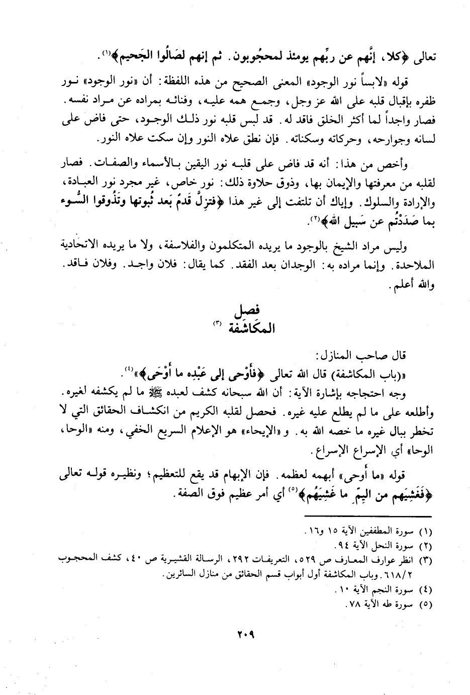 وَلَيْسَ مُرَادُ الشَّيْخِ بِالْوُجُودِ مَا يُرِيدُهُ الْمُتَكَلِّمُونَ وَالْفَلَاسِفَةُ، وَلَا مَا يُرِيدُهُ الِاتِّحَادِيَّةُ الْمَلَاحِدَةُ، وَإِنَّمَا مُرَادُهُ بِهِ الْوِجْدَانُ بَعْدَ الْفَقْدِ، كَمَا يُقَالُ: فُلَانٌ وَاجِدٌ، وَفُلَانٌ فَاقِدٌ، وَاللَّهُ أَعْلَمُ.