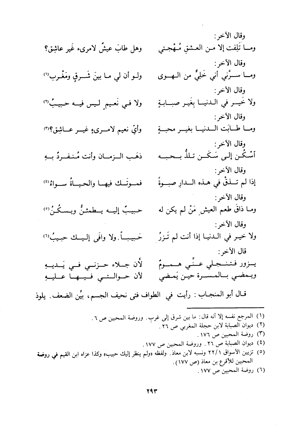 وَلَا خَيْرَ فِي الدُّنْيَا بِغَيْرِ صَبَابَةٍ ... وَلَا فِي نَعِيمٍ لَيْسَ فِيهِ حَبِيبُ
