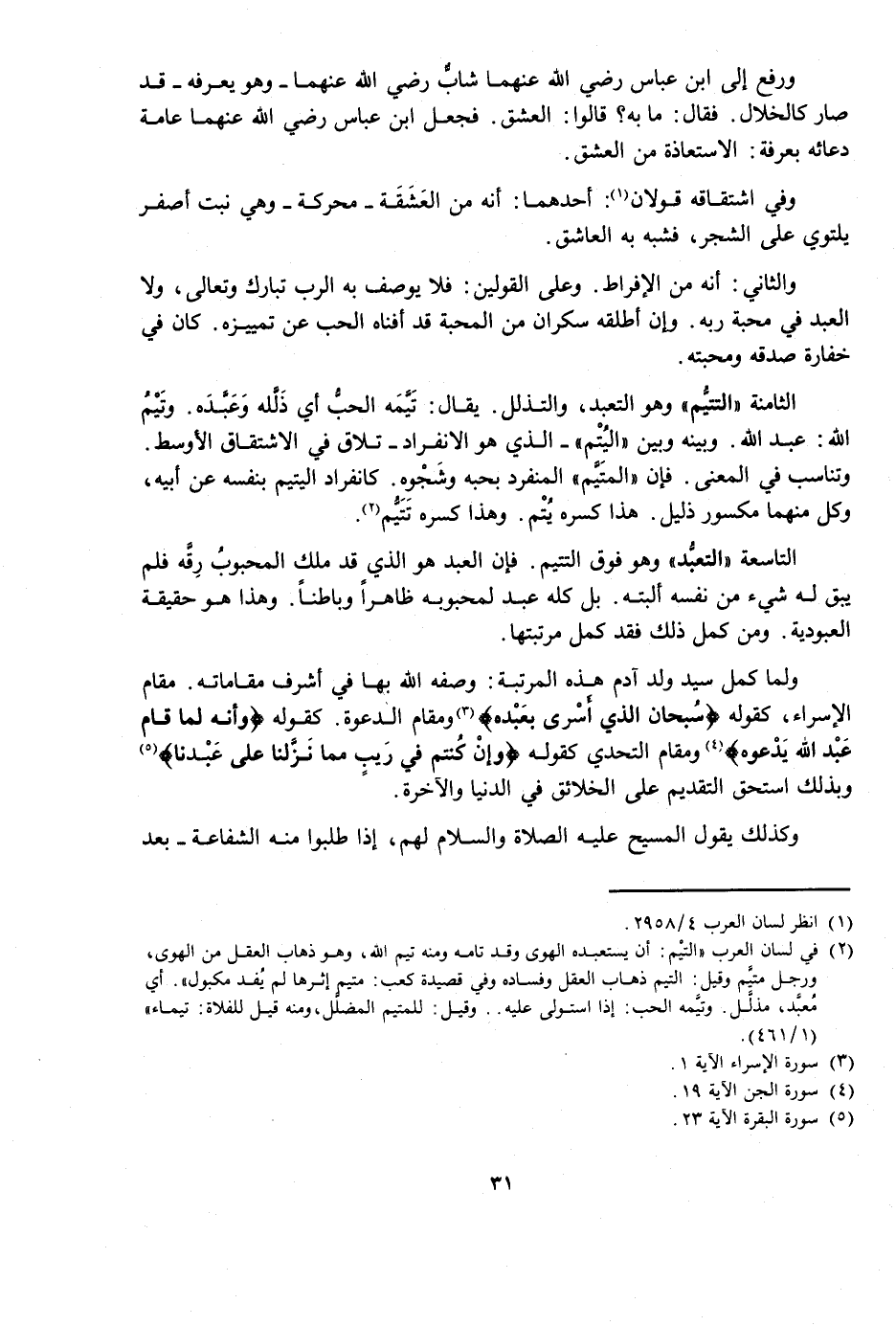 وَالثَّانِي: أَنَّهُ مِنَ الْإِفْرَاطِ. وَعَلَى الْقَوْلَيْنِ: فَلَا يُوصَفُ بِهِ الرَّبُّ تَبَارَكَ وَتَعَالَى، وَلَا الْعَبْدُ فِي مَحَبَّةِ رَبِّهِ. وَإِنْ أَطْلَقَهُ سَكْرَانُ مِنَ الْمَحَبَّةِ قَدْ أَفْنَاهُ الْحُبُّ عَنْ تَمْيِيزِهِ. كَانَ فِي خِفَارَةِ صِدْقِهِ وَمَحَبَّتِهِ.