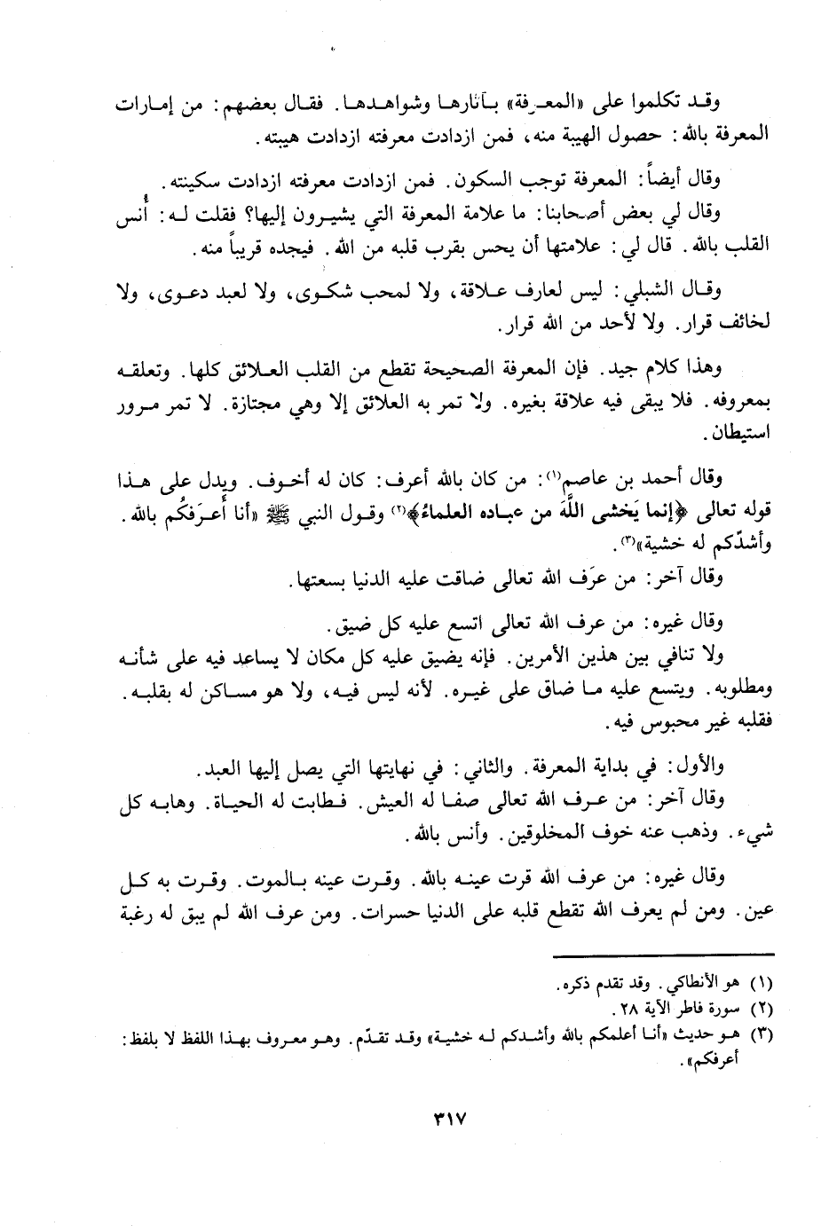وَقَالَ لِي بَعْضُ أَصْحَابِنَا: مَا عَلَامَةُ الْمَعْرِفَةِ الَّتِي يُشِيرُونَ إِلَيْهَا؟ فَقُلْتُ لَهُ: أُنْسُ الْقَلْبِ بِاللَّهِ، قَالَ لِي: عَلَامَتُهَا أَنْ يُحِسَّ بِقُرْبِ قَلْبِهِ مِنَ اللَّهِ، فَيَجِدُهُ قَرِيبًا مِنْهُ.