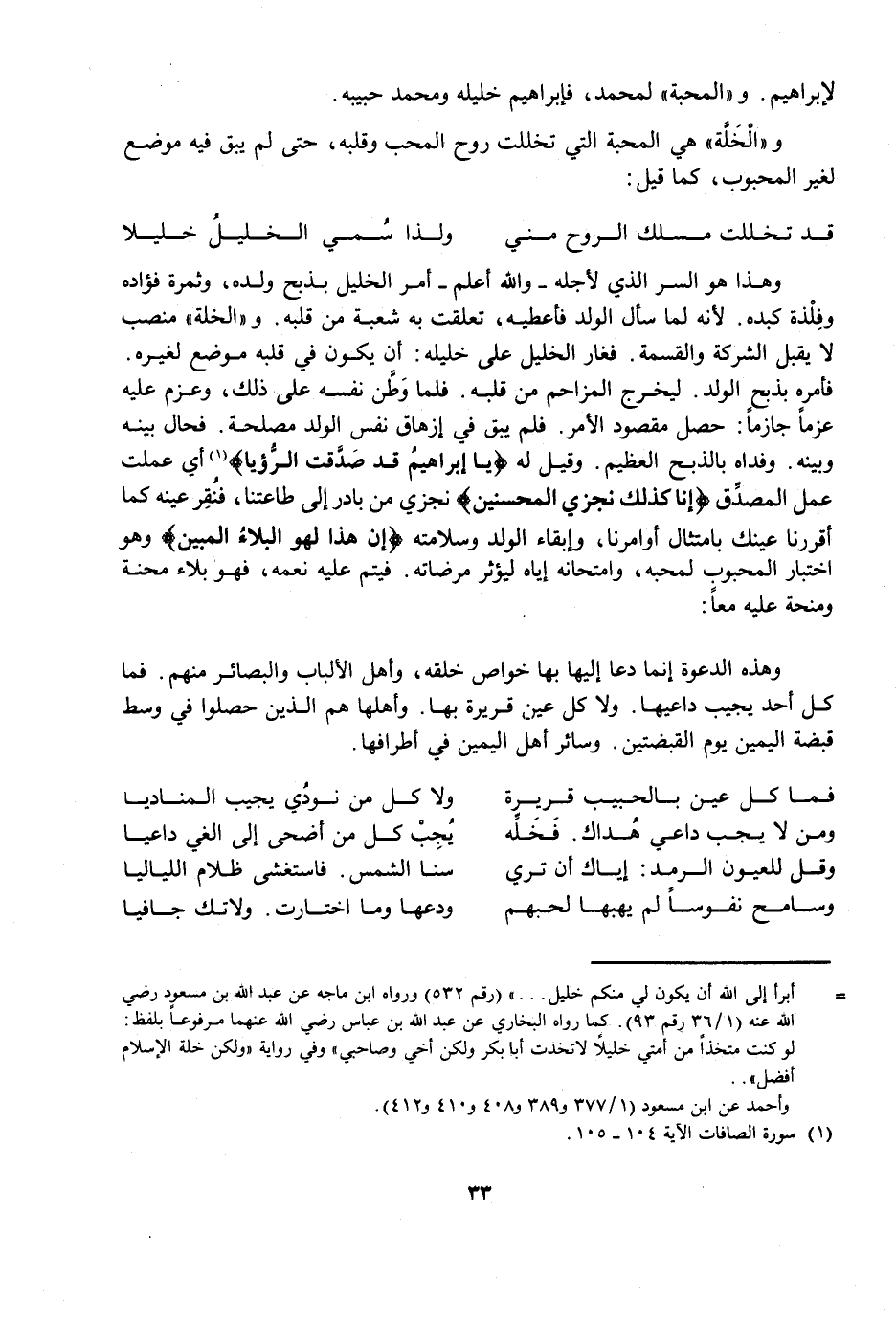 لِإِبْرَاهِيمَ. وَالْمَحَبَّةُ لِمُحَمَّدٍ، فَإِبْرَاهِيمُ خَلِيلُهُ وَمُحَمَّدٌ حَبِيبُهُ.