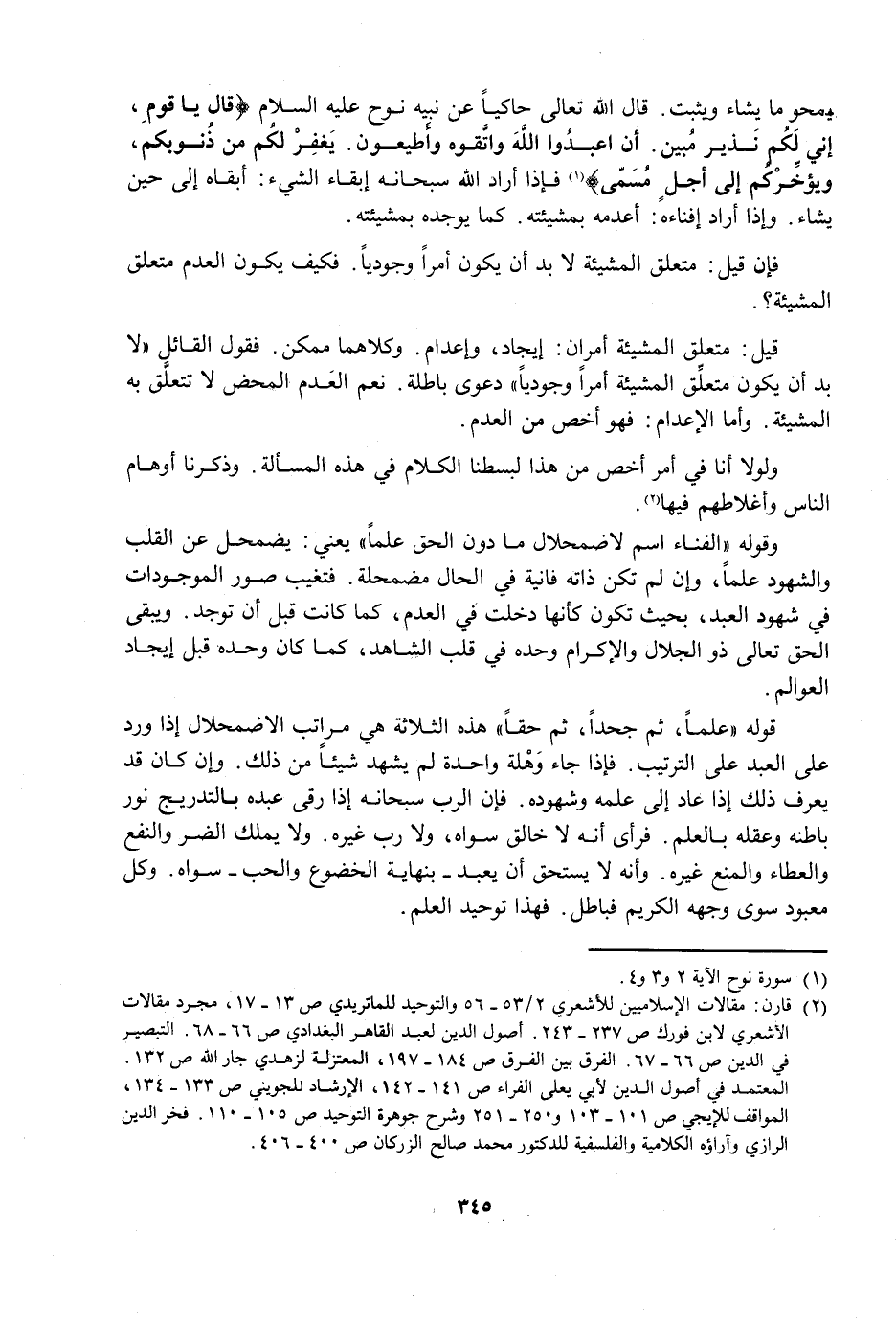 قِيلَ: مُتَعَلِّقُ الْمَشِيئَةِ أَمْرَانِ: إِيجَادٌ، وَإِعْدَامٌ، وَكِلَاهُمَا مُمْكِنٌ، فَقَوْلُ الْقَائِلِ لَابُدَّ أَنْ يَكُونَ مُتَعَلِّقُ الْمَشِيئَةِ أَمْرًا وُجُودِيًا دَعْوَى بَاطِلَةٌ، نَعَمُ، الْعَدَمُ الْمَحْضُ لَا تَتَعَلَّقُ بِهِ الْمَشِيئَةُ، وَأَمَّا الْإِعْدَامُ: فَهُوَ أَخَصُّ مِنَ الْعَدَمِ.