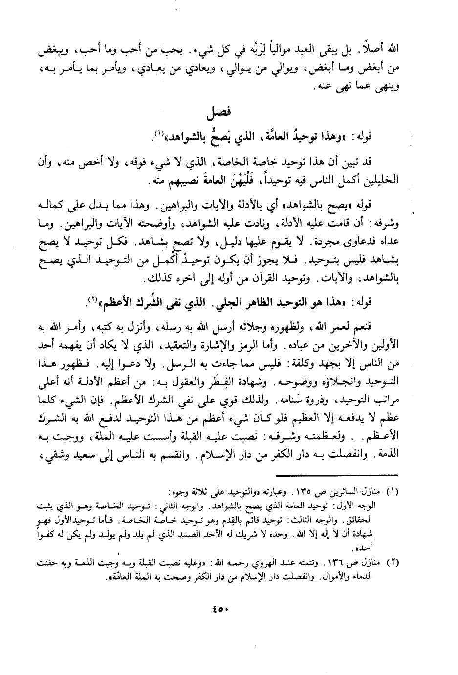 قَدْ تَبَيَّنَ أَنَّ هَذَا تَوْحِيدُ خَاصَّةِ الْخَاصَّةِ، الَّذِي لَا شَيْءَ فَوْقَهُ، وَلَا أَخَصَّ مِنْهُ، وَأَنَّ الْخَلِيلَيْنِ أَكْمَلُ النَّاسِ فِيهِ تَوْحِيدًا، فَلْيَهْنَ الْعَامَّةَ نَصِيُهُمْ مِنْهُ.