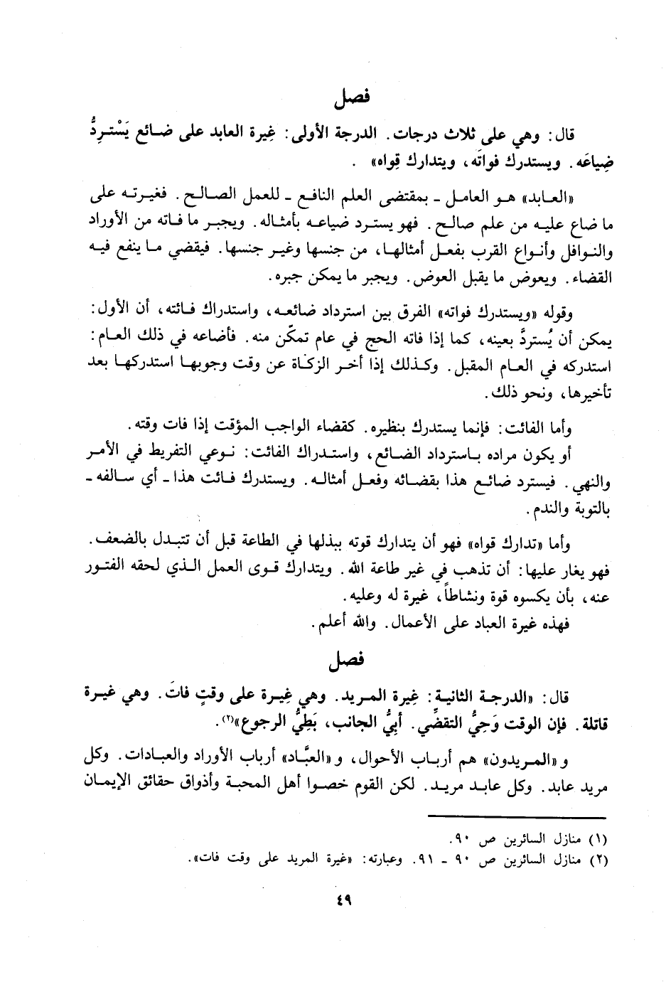 قَالَ: الدَّرَجَةُ الثَّانِيَةُ: غَيْرَةُ الْمُرِيدِ. وَهِيَ غَيْرَةٌ عَلَى وَقْتٍ فَاتَ. وَهِيَ غَيْرَةٌ قَاتِلَةٌ. فَإِنَّ الْوَقْتَ وَحِيُّ التَّقَضِّي. أَبِيُّ الْجَانِبِ، بَطِيُّ الرُّجُوعِ.