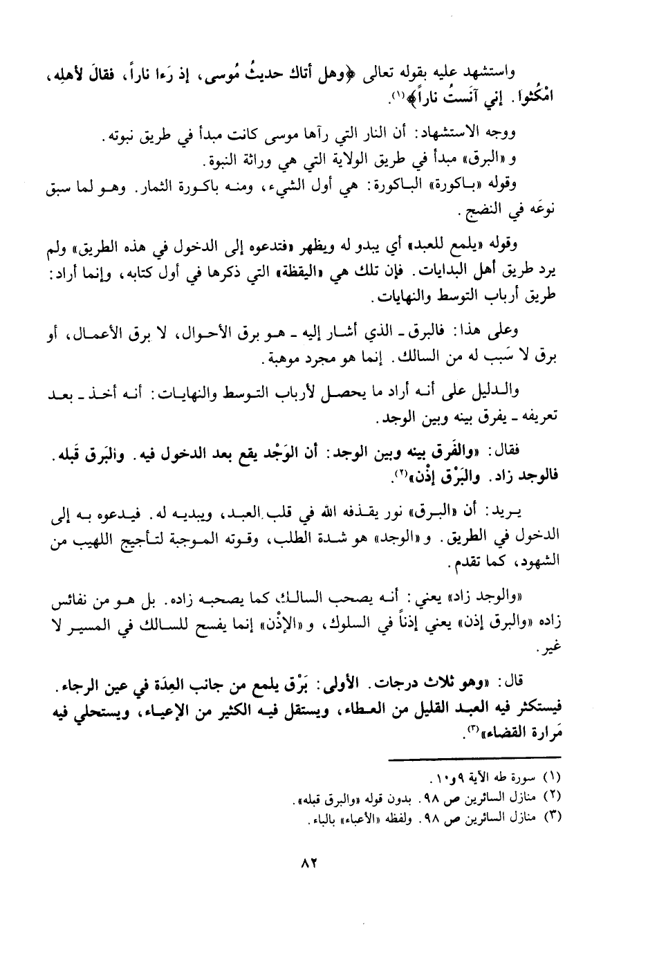 وَعَلَى هَذَا: فَالْبَرْقُ - الَّذِي أَشَارَ إِلَيْهِ - هُوَ بَرْقُ الْأَحْوَالِ، لَا بَرْقُ الْأَعْمَالِ، أَوْ بَرْقٌ لَا سَبَبَ لَهُ مِنَ السَّالِكِ. إِنَّمَا هُوَ مُجَرَّدُ مَوْهِبَةٍ.