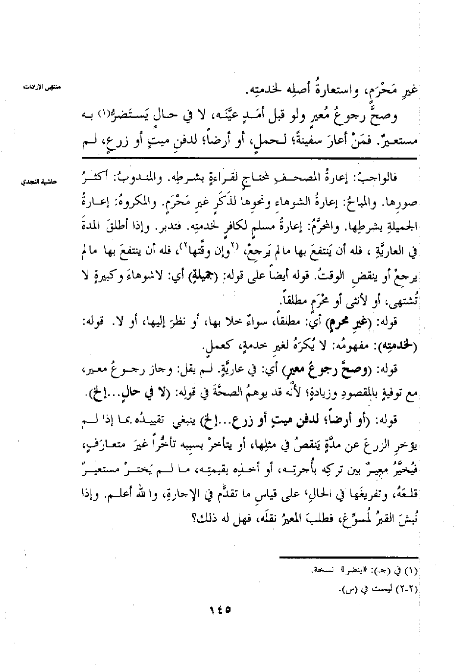 غَيْرِ مَحْرَمٍ واسْتِعَارَة أَصْلِهِ لِخِدْمَتِهِ وَصَحَّ رُجُوعُ مُعِيرٍ وَلَوْ قَبْلَ أَمَدٍ عَيَّنَهُ لَا فِي حَالٍ يَسْتَضِرُّ بِهِمُسْتَعِيرٌ فَمَنْ أَعَارَ سَفِينَةً لِحَمْلٍ، أَوْ أَرْضًا لِدَفْنِ مَيِّتٍ، أَوْ زَرْعٍ. لَمْ